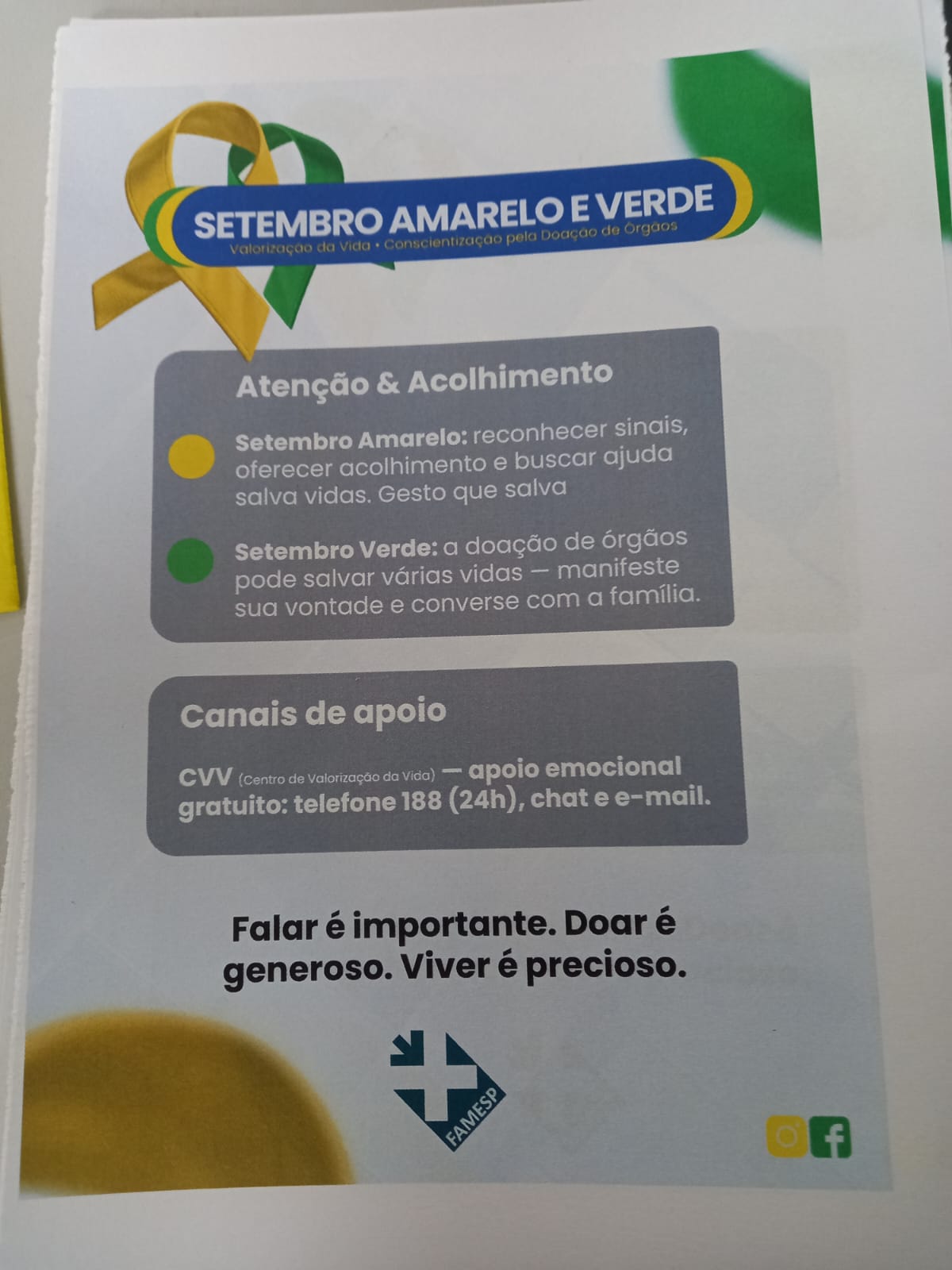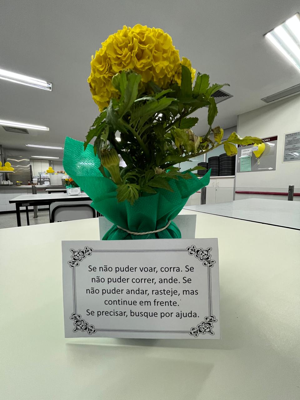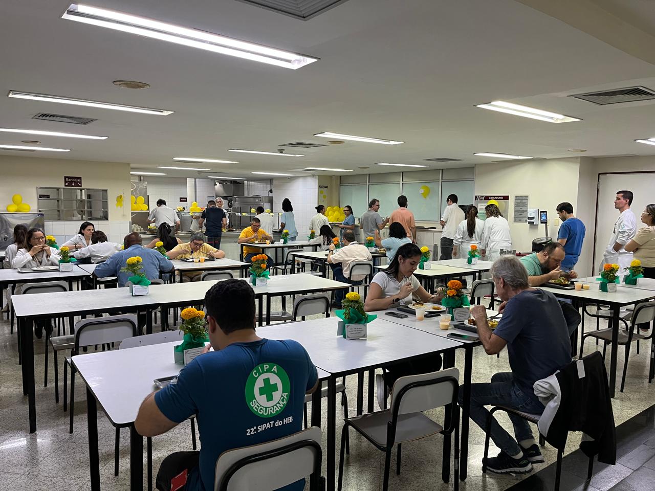 Em alusão à campanha Setembro Amarelo, que tem como foco a prevenção ao suicídio e a promoção do bem-estar emocional, o Hospital Estadual de Bauru (HEB) realizou, no dia 22 de setembro, um almoço especial das 11h às 14h, no refeitório da unidade. O cardápio foi pensado para despertar memórias afetivas e proporcionar uma pausa de aconchego e bem-estar. Pacientes internados no Hospital, com indicação de dieta geral, também receberam a comida afetiva nesta data com um recado sobre a campanha.