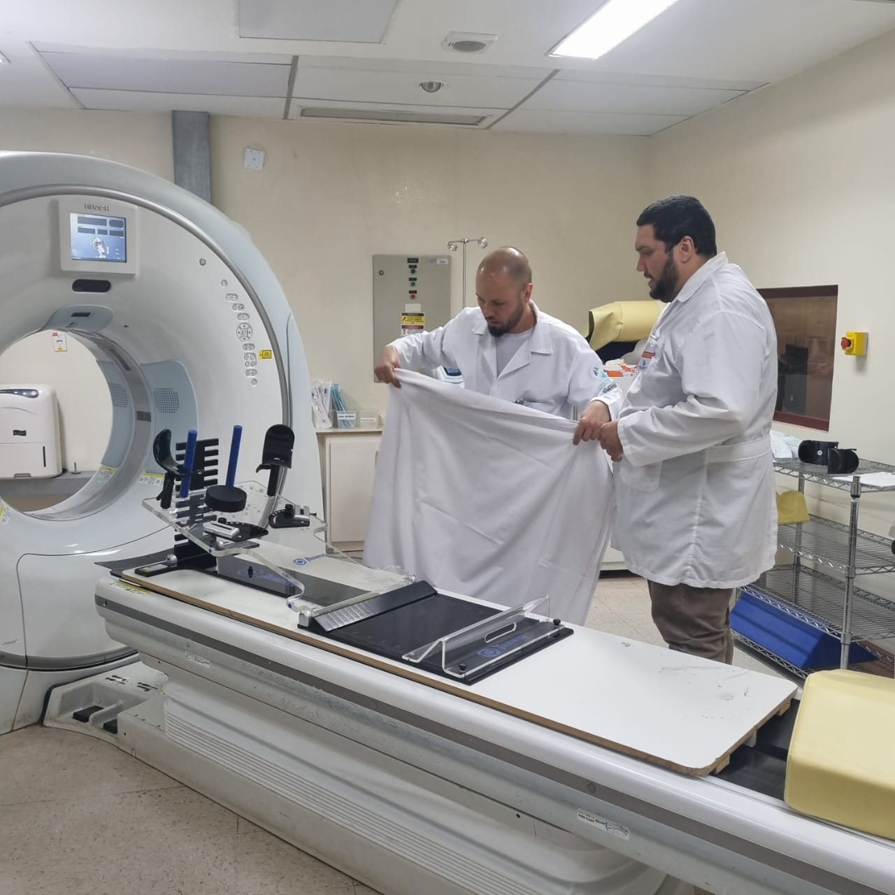 O primeiro paciente já está em acompanhamento multiprofissional para início do tratamento. A primeira consulta foi realizada no dia 2, e, em 5 de junho, foi feito o exame de tomografia, etapa essencial para o planejamento das sessões de radioterapia.