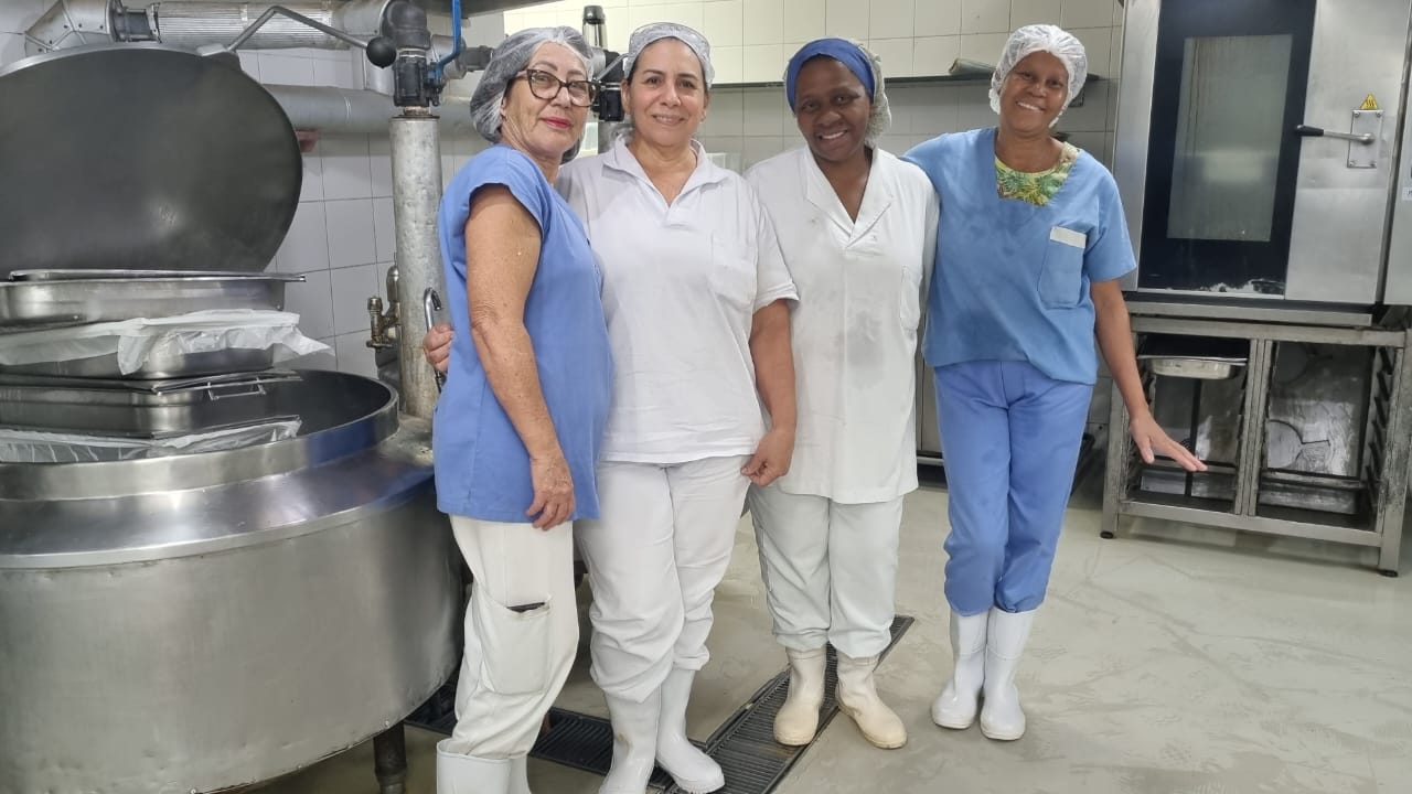 Cozinheiras, a partir da esquerda: Solemar de Campos, Silvana Stafussi Fernandes, Ana Cristina da Silva